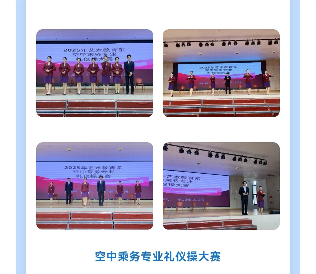 为学习贯彻党的二十大精神和习近平总书记关于职业教育的重要指示批示精神,根据各专业人才培养方案要求,艺术教育系空中乘务专业、舞蹈表演专业、舞蹈表演(街舞)专业、音乐教育专业、美术教育专业于12月22日-26日开展2025-2026学年第一学期实训周系列活动。